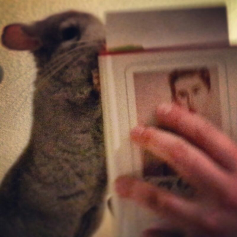 Jupp, das ist ein Chin, der auf den Namen Scrat hört und dem Säbelzahn-Eichhörnchen aus „Ice Age“ manchmal ähnelt 😀 Darüber hinaus nagt er auch gerne Bücher an. Das war sein Versuch, eine erneute Schandtat zu betreiben :D, was der wunderbare Roman nicht verdient hätte. 😛