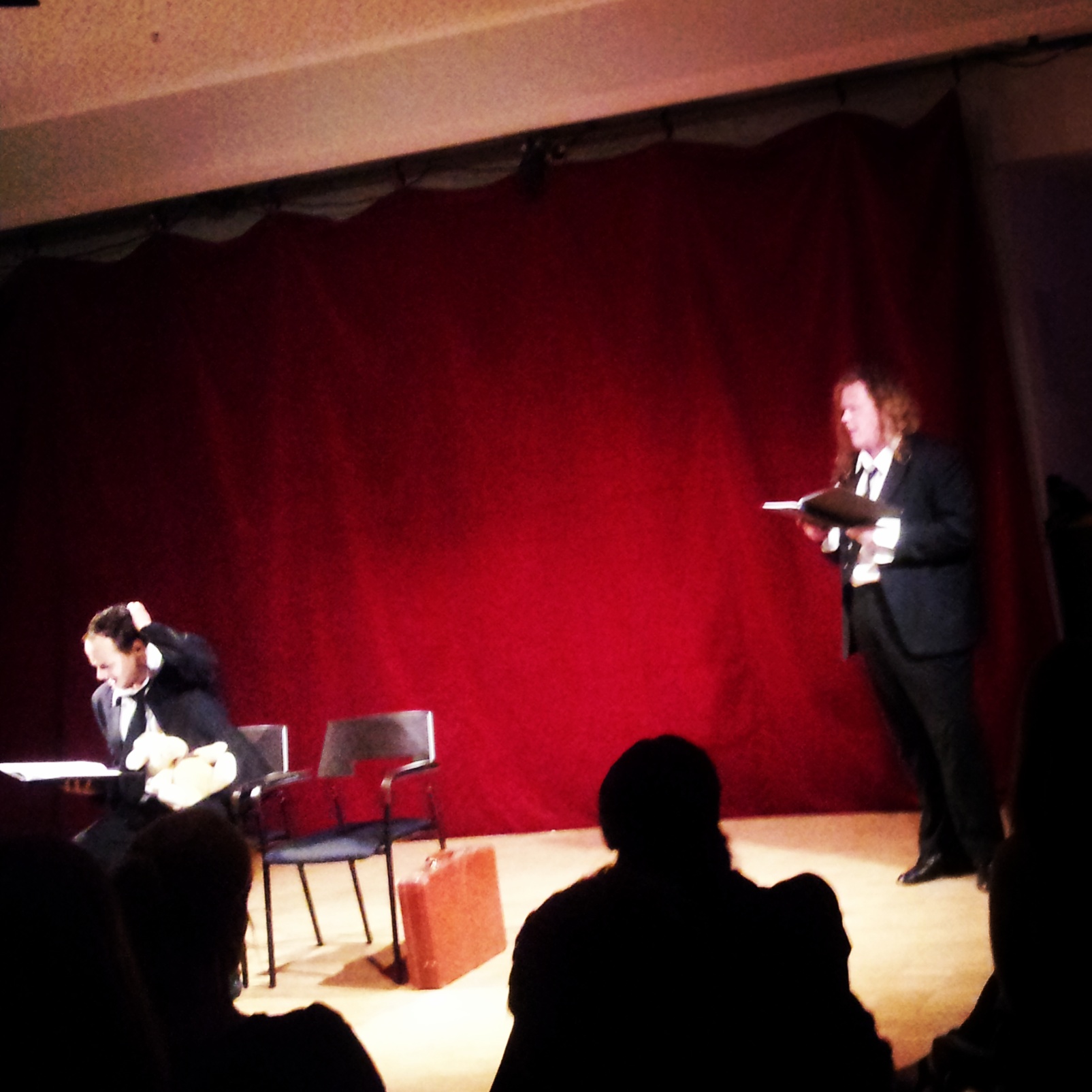 Nick Cave - Der Tod des Bunny Munro Szenische -  Lesung 1Überdreht, aggressiv und voller Adrenalin läuft Bunny Munro ins Publikum des Paderborner Theaters. Der kraftvolle und Aufmerksamkeit erregende Auftritt wirkt. Etwas stimme doch nicht ganz mit dem Herren da. Richtig. Könnte sein. Gespielt wird Bunny von Stephan Weigelin, im zur Seite steht Max Rohland. Beide habe ich einen Tag vorher bei der wunderbaren Inszenierung im Rahmen der SIGNS.-Veranstaltungsreihe von »Mary & Max« in ebendiesem Schauspielhaus bestaunen können. Nun widmen sich beide allerdings dem Stück von Nick Cave, Musiker, Schriftsteller und Schauspieler – und es geht ganz schön zur Sache.