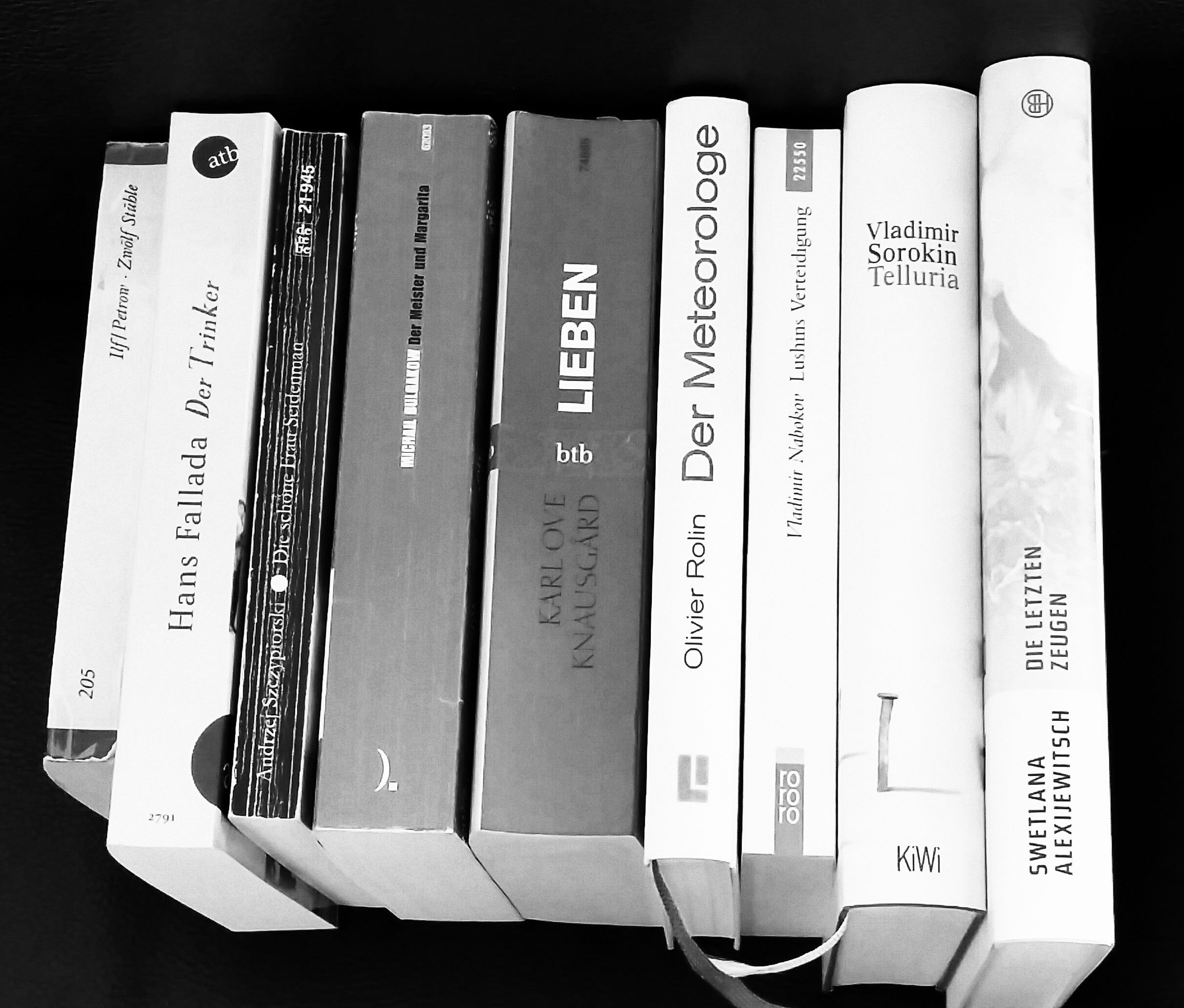 - Alexijewitsch, Swetlana – Die letzten Zeugen: Noch vor der Nobelpreis-Vergabe gelesen. Dokumentarisches Konstrukt, das an die Nieren geht und die Menschen sprechen lässt, die im 2. Weltkrieg Kinder waren.