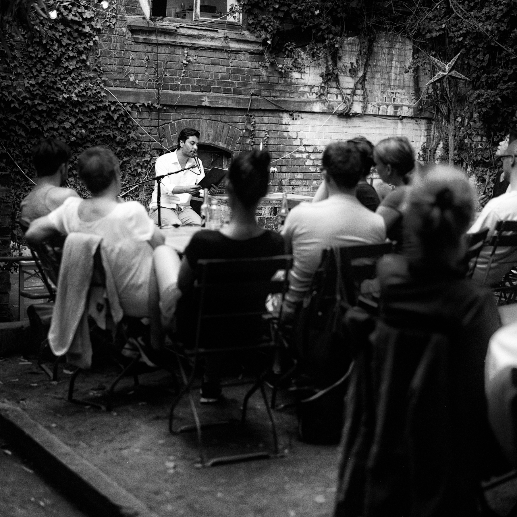 Seit über 15 Jahren beschäftige ich mich jetzt mit meiner Stimme. Angefangen durch Rap, später auch Gesang. 2006 habe ich ein paar Semester Sprechkunst an der Musikhochschule in Stuttgart studiert. Im Hauptfach rezitiert man dort Lyrik und Prosa. In den Nebenfächern hat man Körperarbeit, Theaterpädagogik, auch Psychologie und Germanistik. Man lernt den eigenen Körper als Instrument kennen. Denn der gehört definitiv zur Stimmbildung dazu. Irgendwann entstand mehr aus einer Laune heraus die Idee, eine Lesung zu machen. So kam der Stein ins Rollen.